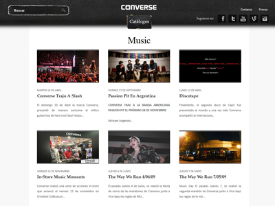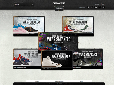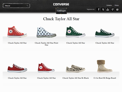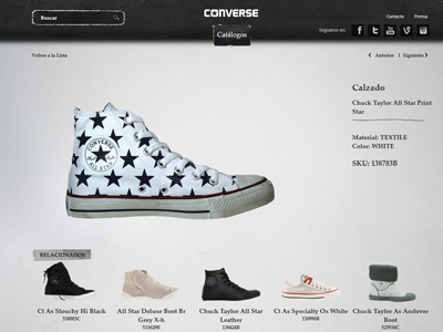 Se realizó un diseño moderno,dinámico y funcional, basado en el original sitio de Converse USA, se ajustó cada detalle al máximo a con la estética de Converse, con un home animado que nos permite visualizar rápidamente las novedades y productos nuevos del momento.