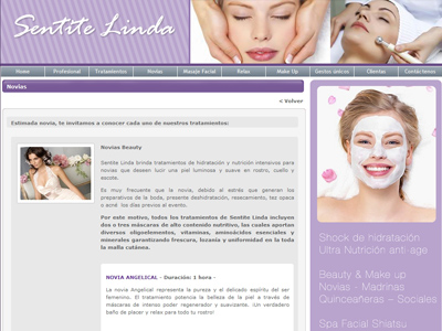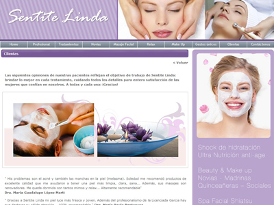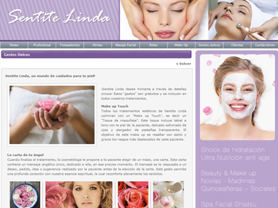 En el sitio el cliente podrá consultar todos los servicios que le empresa ofrece para todo tipo de mujer. Es una web dinámica y atractiva, que recrea la imagen de la mujer profesional que a pesar de tener sus días de agotamiento y estrés, no deja de querer sentirse bien y bella.