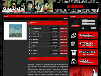 Desarrollamos la STv2.0 para el lanzamiento de Gazpachomusic. Un portal completamente autoadministrable 2.0, que presenta noticias, videos, encuestas, descargas de sus temas y principalmente la Comunidad Virtual para sus fans.