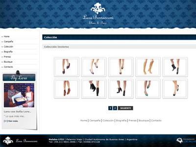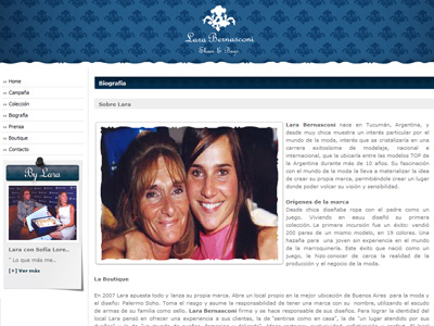 Tal como Lara lo describe en su sitio, apuesta todo al lanzamiento de su Marca. En primer lugar crea un ambiente ideal para que sus clientes visiten la boutique y encuentren exclusividad, confort y sofisticación. Habiendo logrado imponer su Marca que se distingue por el escudo de armas de su familia como sello, ahora apuesta a contar con un sitio que permita a sus clientes acceder a toda la información de sus diseños de manera práctica pero también con identidad. La SIv2.0 asume el desafío y logra en este sitio un punto alto al combinar perfectamente diseño y performance.