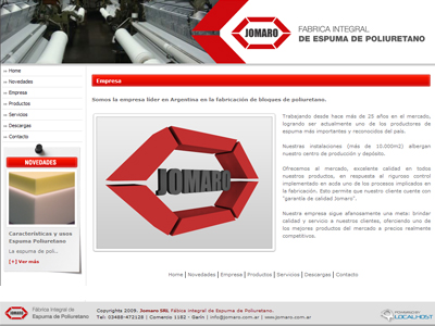 Solución Institucional v2.0 para el sitio institucional de la fábrica Jomaro S.R.L. Esta nueva herramienta superó ampliamente las expectativas de Jomaro S.R.L, gracias a su flexibilidad en el diseño y a su formato "amigable" para subir el contenido del sitio web de manera autoadministrable. Se crearon secciones con diferentes diseños y formatos para volcar el contenido del sitio. El cliente, mediante el uso de la SIv2.0. lográ manejar en forma completa los contenidos de su Website, obteniendo de este modo una permanente actualización de su actividad comercial.